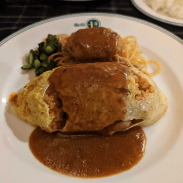 My hobby is eating out and ordering. The photo shows a taste I remember from my childhood: omelet rice from Grill Ippei in Amagasaki. But my favorite thing is sushi.